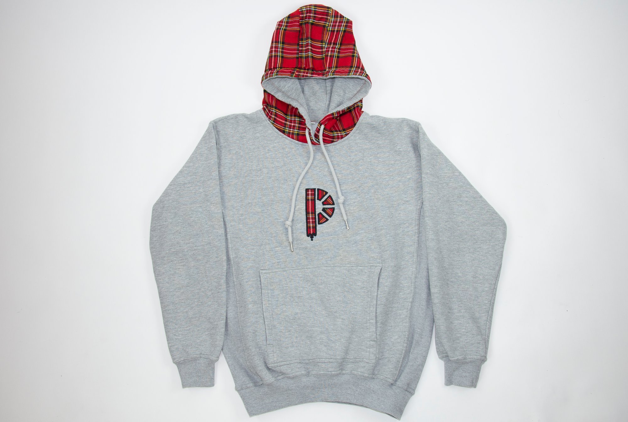 - 'P' logo in flannel - 100% premium cotton hoodie - Heather gray fabric - Flannel Hood - Side ribbing